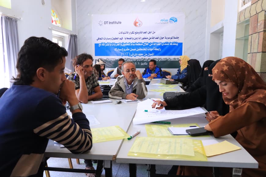 SAM Organization for Rights and Liberties conducted an awareness session in Al-Mudhaffar District, Taiz Governorate, under the slogan “For Justice and Preventing the Repetition of Violations”. The session focused on justice from the perspective of survivors, understanding rights, and pathways to recovery, as part of efforts to strengthen collective awareness among victims about the importance of transitional justice as a comprehensive approach to addressing human rights violations and ensuring they are not repeated.